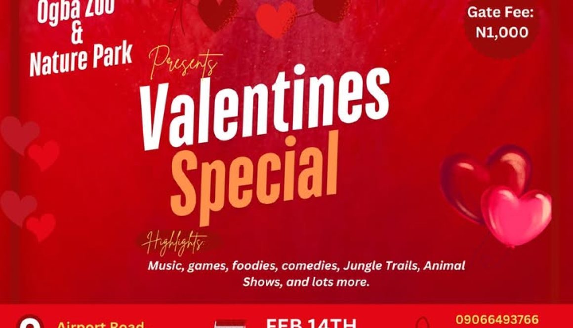 Share the fun with your loved ones this Valentines (Feb 14th) at Ogba Zoo & Nature Park, Airport Road, Ogba, Benin City.