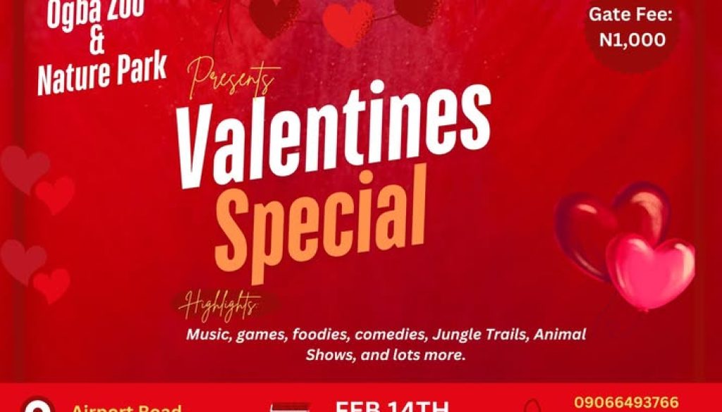 Share the fun with your loved ones this Valentines (Feb 14th) at Ogba Zoo & Nature Park, Airport Road, Ogba, Benin City.